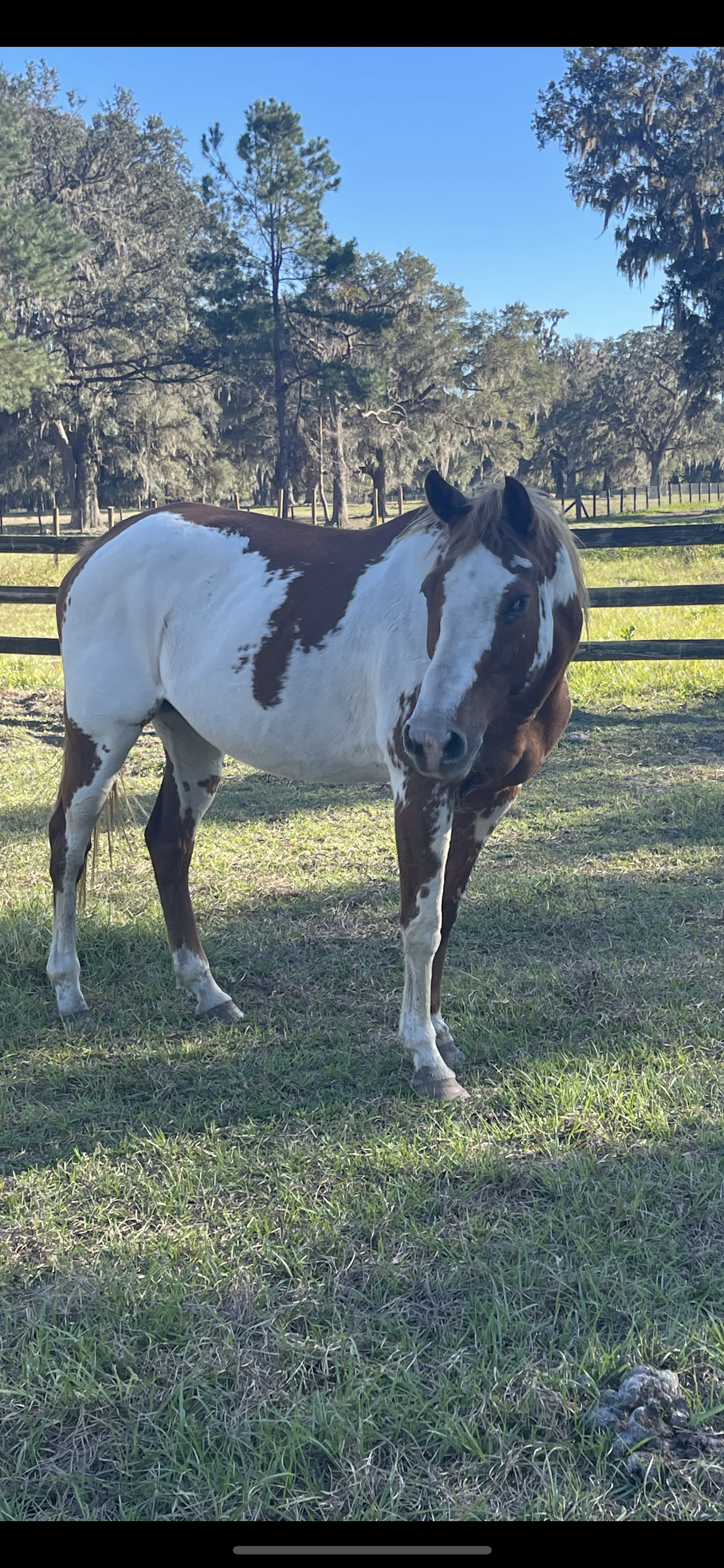 Adele is a teenager American Quarter Horse paint who now saddles and is getting friendlier by the day.
